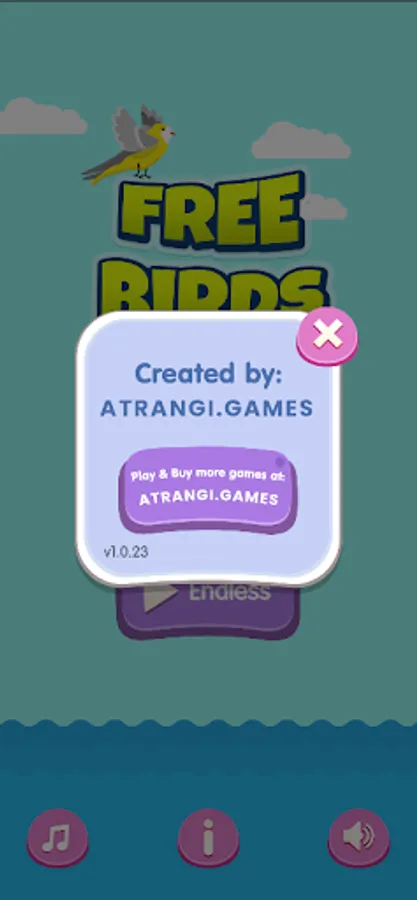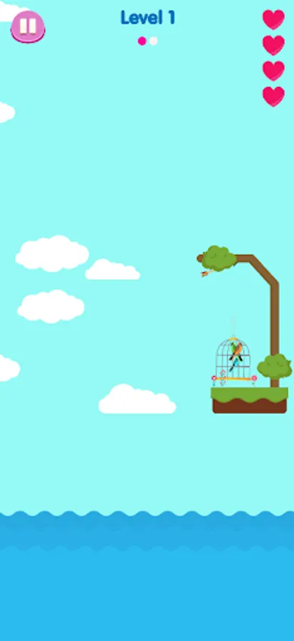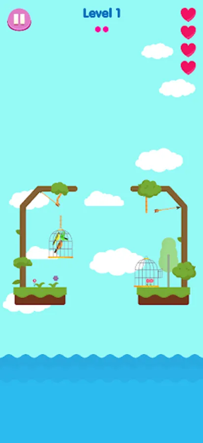 Freebirds is a casual puzzle game featured on AtrangiGames store. It comes with two modes: Leveled and endless. In this game, Birds are trapped in cages, and you must use a bow and arrows to set them free. Using your aim and arrow power, you must shoot the cage’s rope holding the birds to free them and pass each level. The Leveled mode of the game includes several stages (between 2 and 5), while in the endless mode, the player starts with five lives (hearts), and for each unsuccessful shot, they lose a life. The game will continue as long as the player has a life. There are also items in the game known as extra arrows that help you progress through the levels.