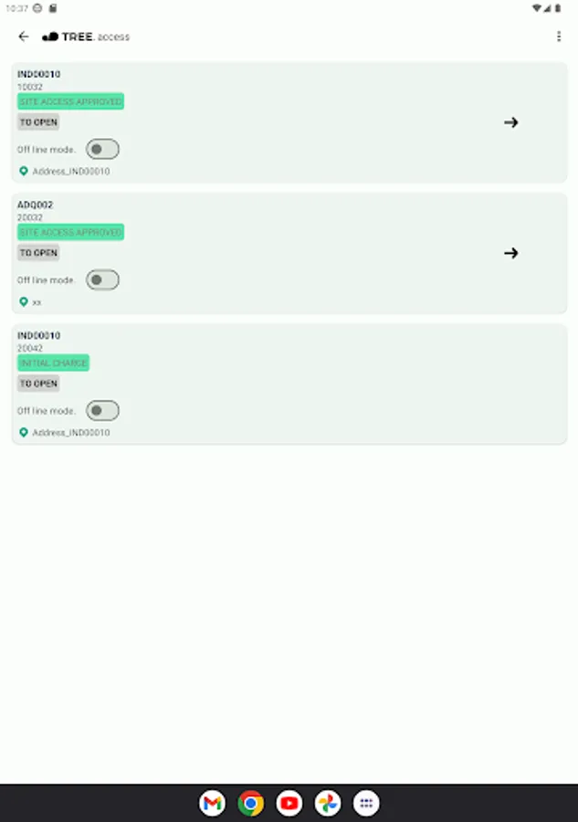 Mobile app that includes all field operations, from maintenance and access to inventory and facility management. Characterized by: Access to system information, maintenance checklist, file and photo upload, geopositioning tracking.