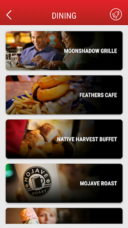 Avi Resort & Casino offers a wide variety dining options; Moonshadow Grille, Native Harvest Buffet, Feathers Café, Mojave Roast, Subway, Sbarro Pizza, Panda Express, Thrifty Ice Cream and Aha Cantina.