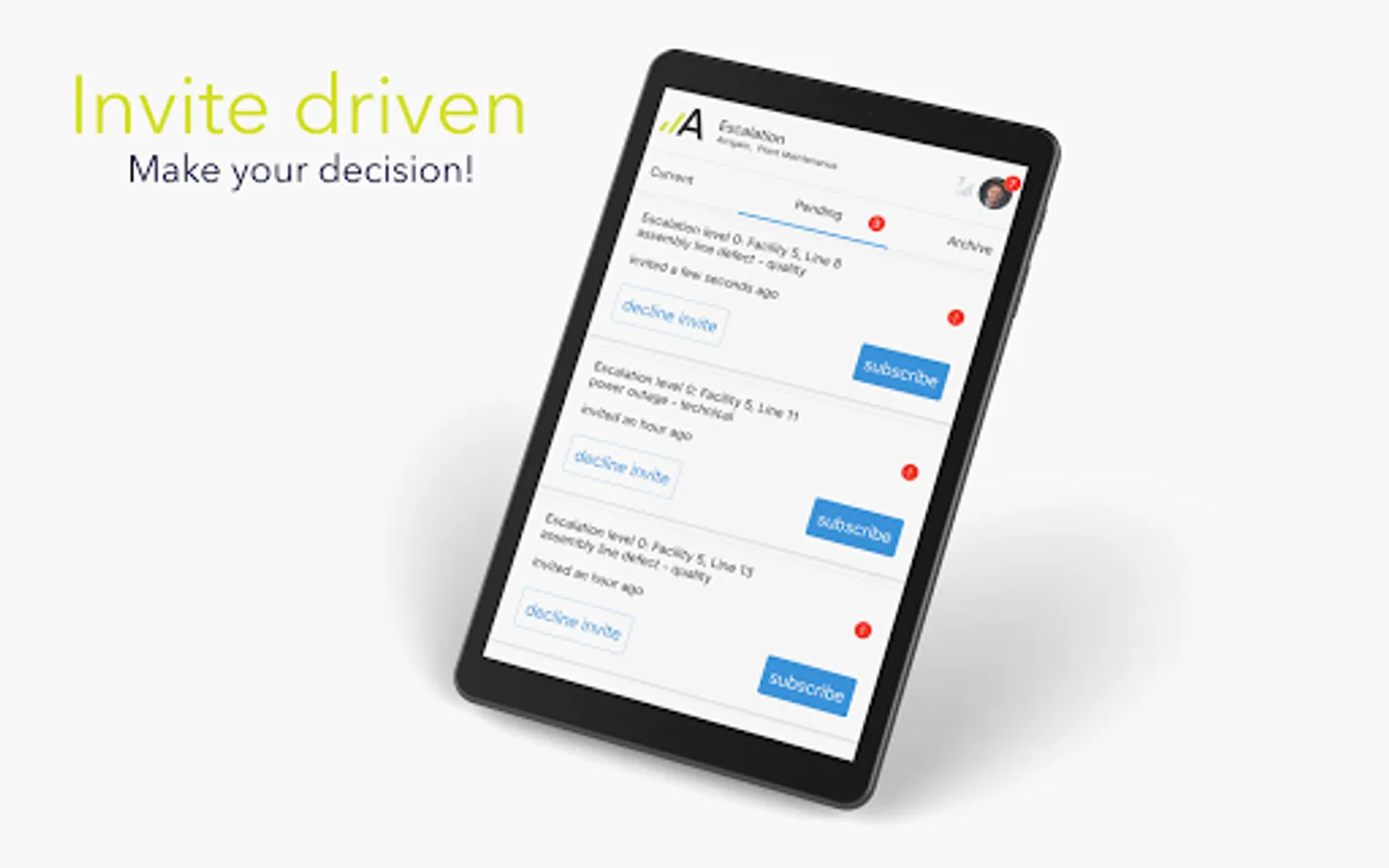 The Atrigam app gives people access to Atrigam's revolutionary collaboration platform. It allows people, machines and devices collaborate smarter using dedicated events and information related to a specific context.
