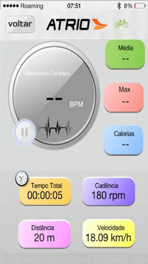 Atrio Fitness allows measurement of heart rate and speed / cadence of your pedaling with the help of Bluetooth Atrio ES055 and ES056 sensors;