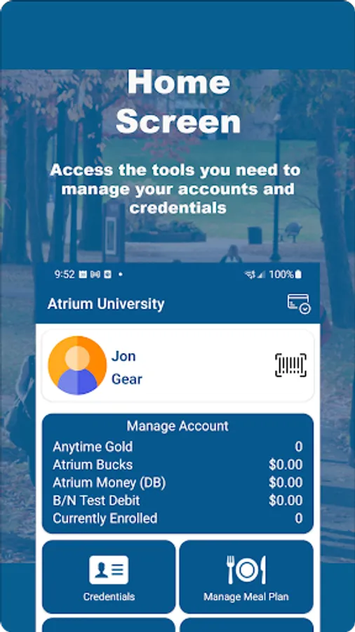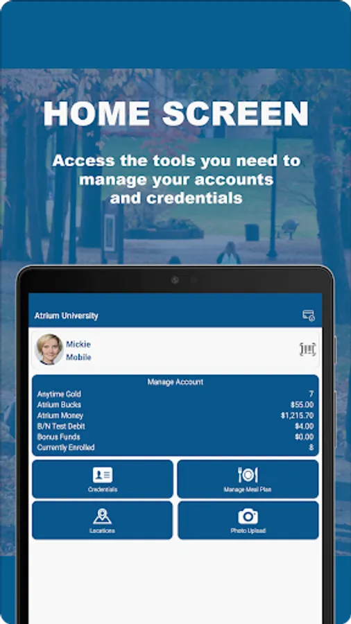 To download the app and activate your account, contact your campus ID card office for help.