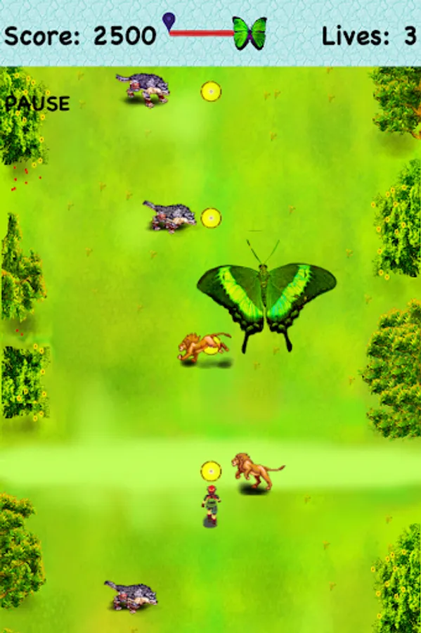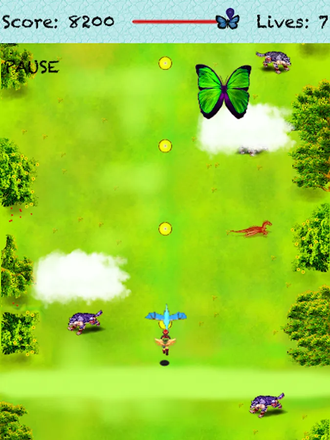 7 (seven) lives is the story of a girl who wants to collect all the beautiful butterflies in this dream fantasy world. But there are dangerous animals and dragons in her path. You have the power to control these dangers. So help her collect (green, black, orange, yellow, golden) butterfly, keep her happy and be a star. Also collect cons on the way.