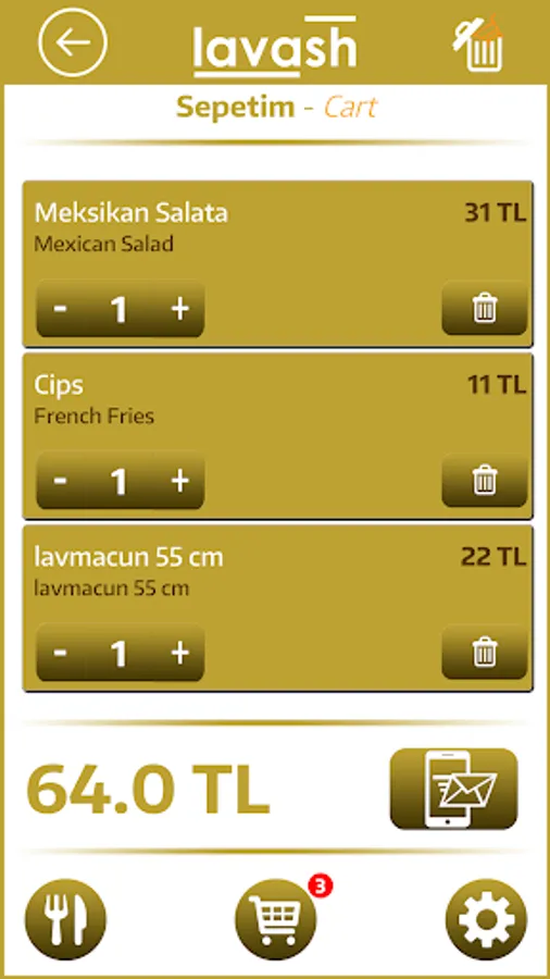 Lavash Mobile Order brings the perfect service you get in restaurants at your fingertips without tiring you with its illustrated menu, food descriptions, dessert and beverage options. You can easily order the menu you want from mobile phones to the address you want, and you can follow your orders instantly. By clicking on the menu pictures, you can reach the details about the menu by allowing you to see the picture in a larger size. In addition, you can see the menu of the week on the opening screen and benefit from our campaigns, see the total amount in the order confirmation, and follow the orders you have placed in the "My Orders" section.