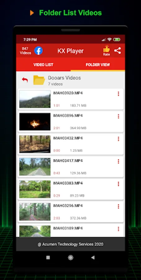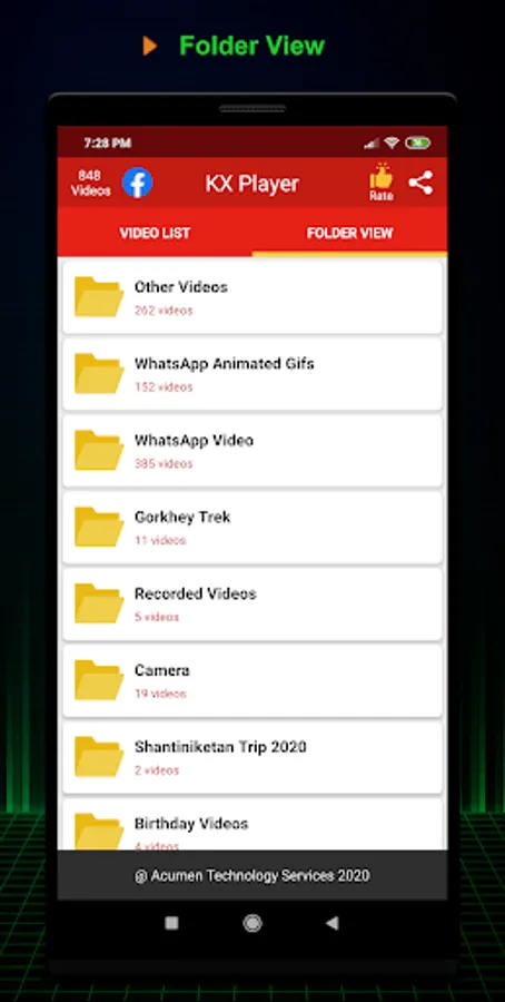 KX Player – Full HD Video Player also list videos according to the Folders and directories in which videos are stored in your device so that you can easily play your preferred videos from the folders of your choice.