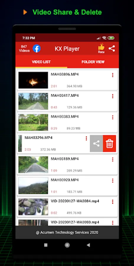 You can also view the total number of videos present in your device and also in each folder, along with the Size of each Video.