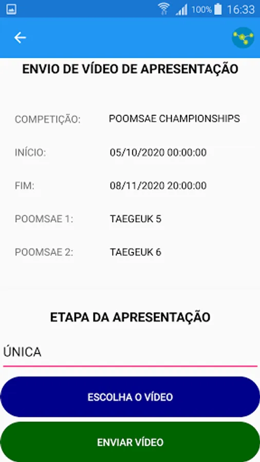 Application for access to competitors of Poomsae sport competitions registered with Advanced Technologies System development.