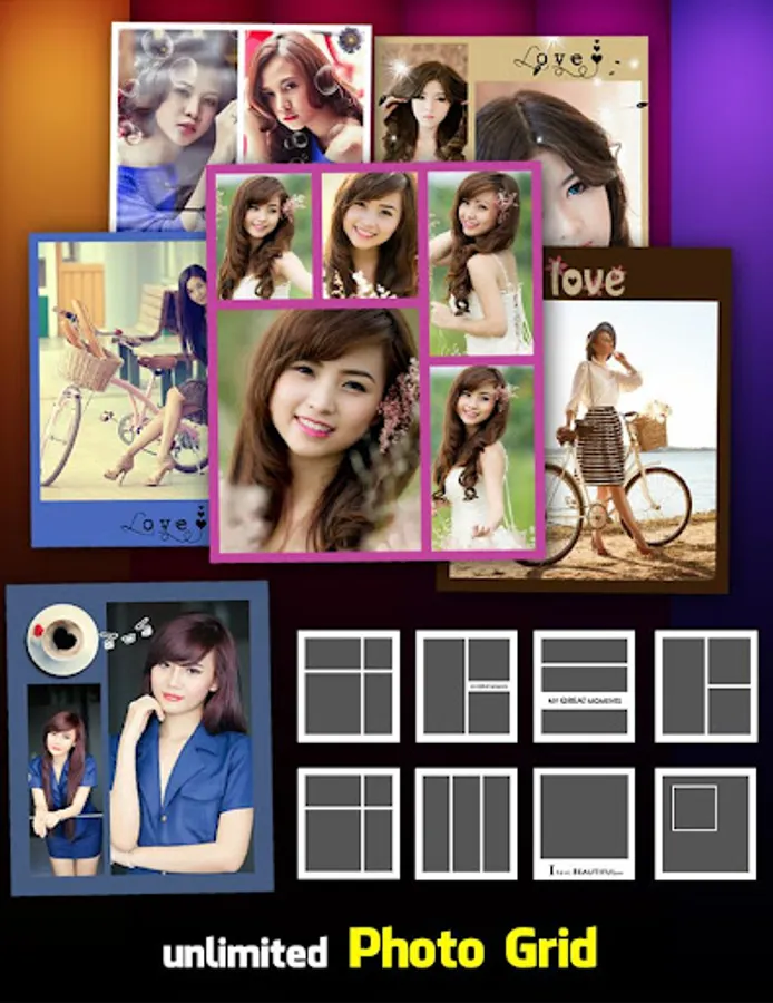 "HD Photo Editor" offers 150 grid photo collage with 1 to 9 slots for your style is unique