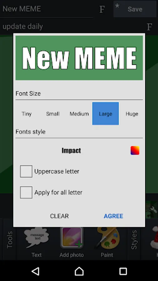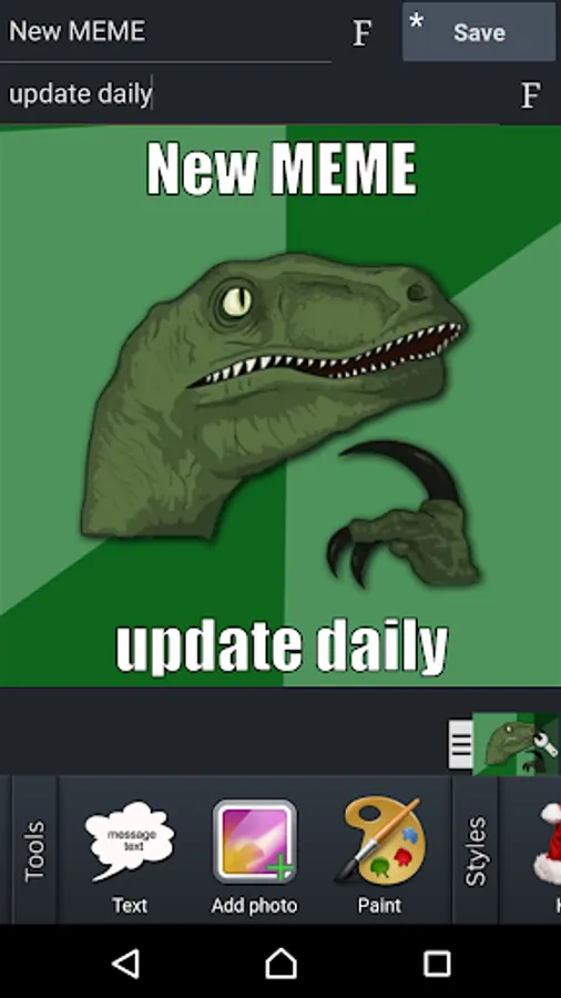 With "Easy Meme Maker" you can create the funniest memes and share them with your friends via Facebook, Twitter, Instagram, Google+, E-mail, Dropbox,...