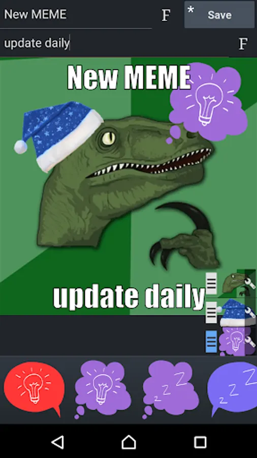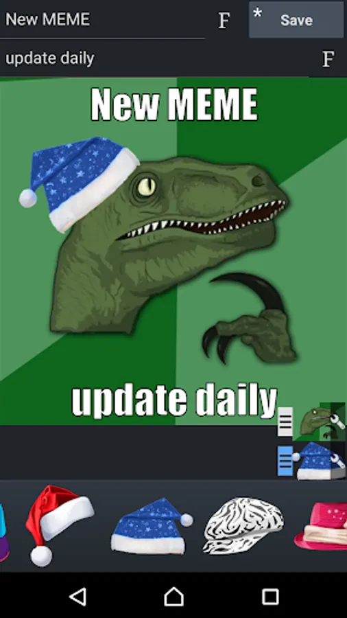 - easy save and share meme with Google Plus, Facebook, Instagram, SMS, Gmail, etc
