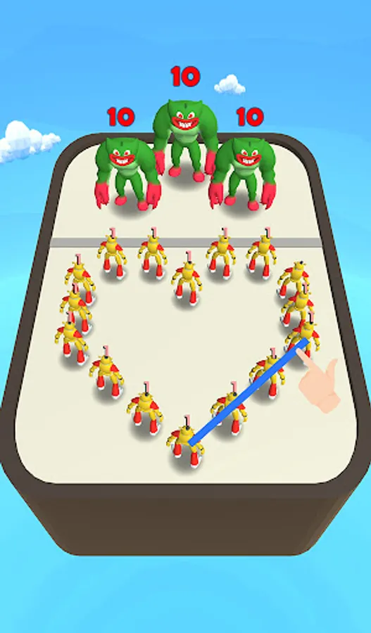 Control your army and merge wisely to kill rivals. Unlock new and more powerful creatures after conquering challenges and using the right combination. Use your finger to draw & grow soldiers to evolve them. Match the same units to merge them into a higher form.