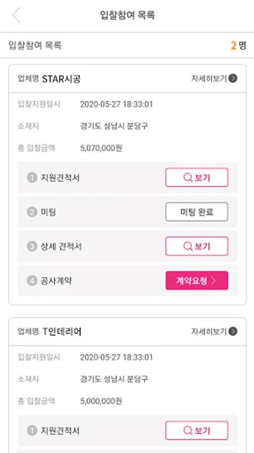 -When applying for interior bid registration for the first time, register the bid by processing the consumer's desired information for construction.