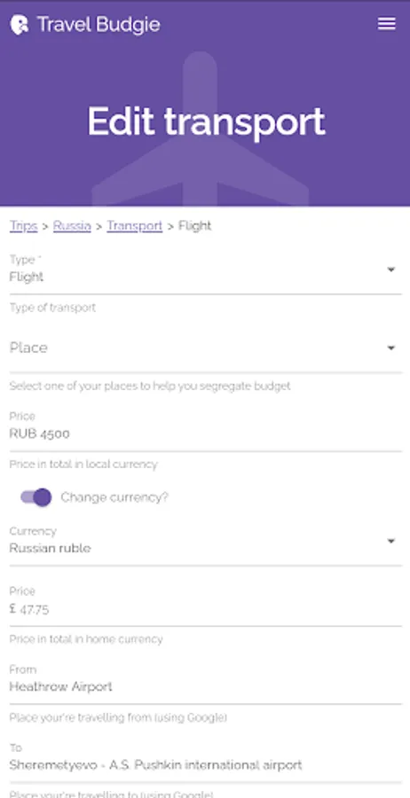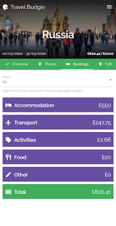 Travel Budgie keeps track of your spending for your travel itinerary, from flights, internal travel, and accommodation, to food and other bookings. Simply log each time you spend or plan to spend on your trip, and avoid creeping costs by sticking to your budget.