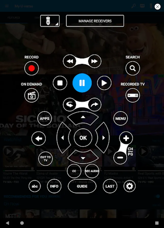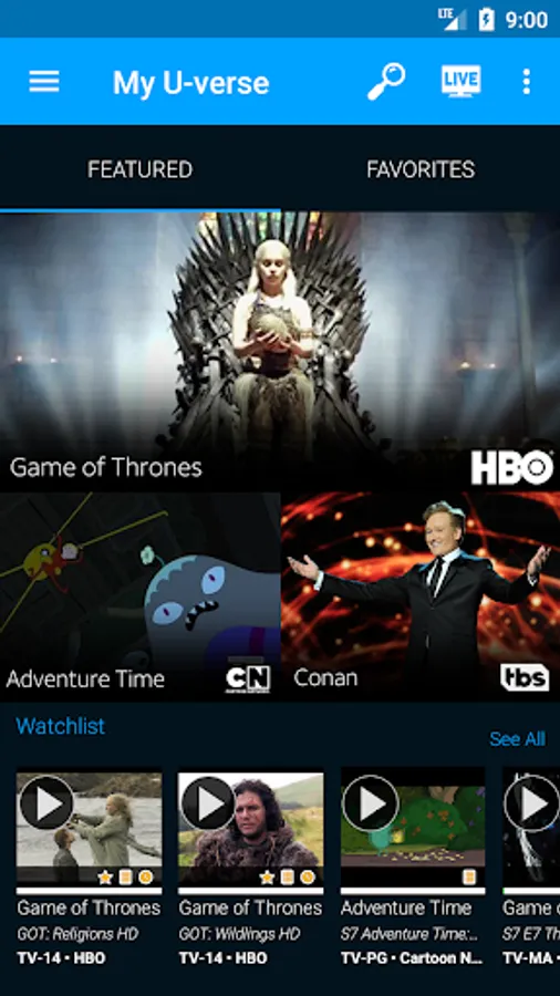 Take the U-verse experience with you with the U-verse App. Watch Live TV and On Demand shows, manage your DVR, and use the app as a remote control.