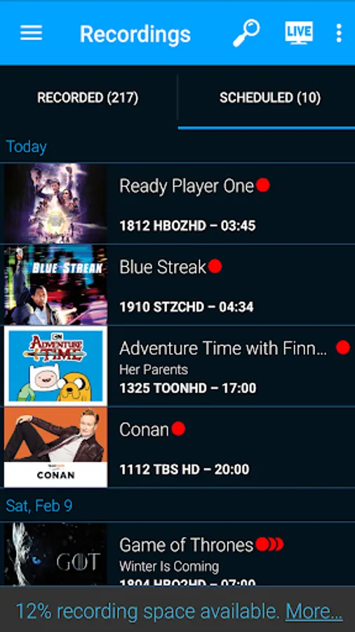 Browse or search your personal TV programming guide to find your favorite shows. Schedule one-time or series recordings on your DVR at home.