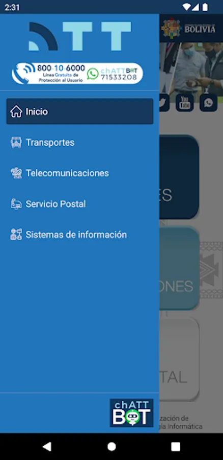 Informative mobile application of the Telecommunications and Transportation Regulation and Supervision Authority where information on the different tools and information available to each and every Telecommunications, Transportation and Postal user will be displayed.