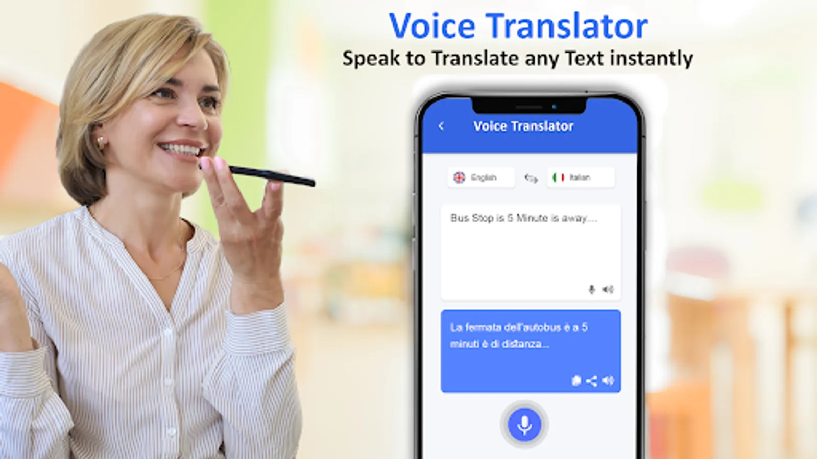Voice translator app translate Hi into all Languages