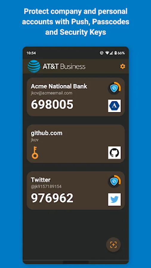 AT&T MFA takes phone-based multi-factor authentication to the next level by turning your phone into a FIDO2 authenticatore. This app leverages the FIDO2/WebAuthn strong authentication standards to deliver a ""phish-proof"" push with a delightful and simple user experience. AT&T MFA's FIDO2 solution works with both our business offering and most consumer websites that support FIDO2 security keys (like facebook.com, twitter.com, google.com, github.com, and many more).