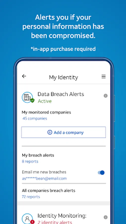 • Breach Reports: Get alerts about company data breaches, along with helpful tips.