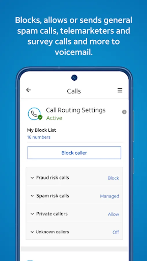 • 24/7 Automatic Fraud Call Blocking: Detects and blocks calls from likely fraudsters before they reach you.