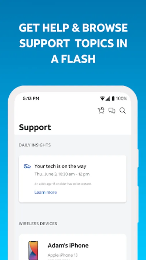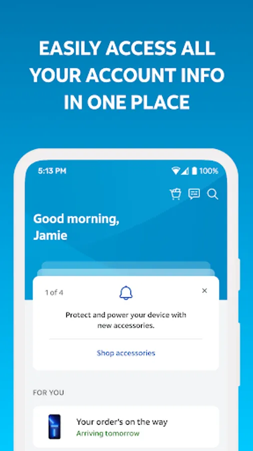 • Upgrade your phone or plan: Pick it up in the store, or have it delivered to you. You can also make changes to your plan right from the app.