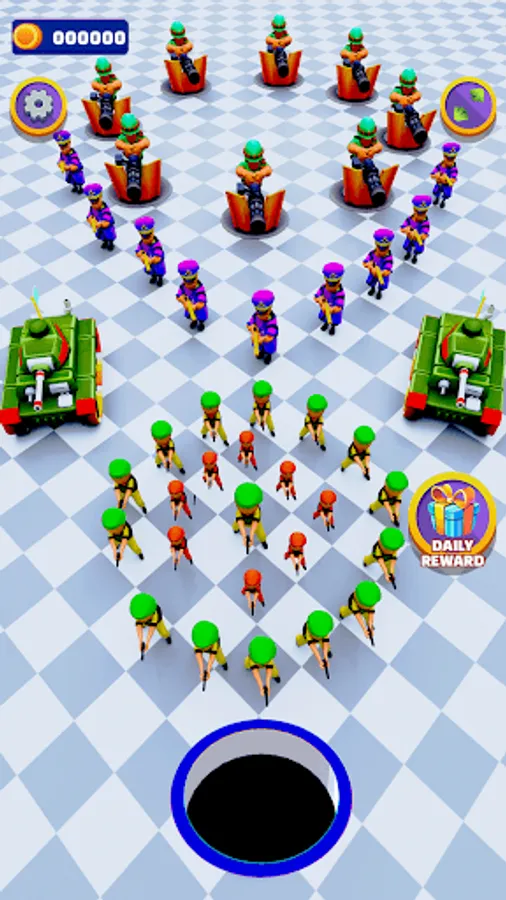 Growing Amidst the Shadows of Merge and Fight Games: With each soldier in the army simulator you amass, the crazy black hole's might strengthen, like a relentless attack. Hole by hole, its gravitational pull intensifies, drawing in more forces to join your army of hole games.