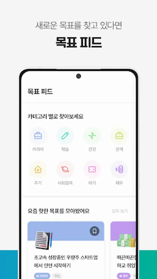 영역별로 선별한 기사 피드를 둘러보며, 바로 실행하고 싶은 추천 목표가 있다면 내 목표로 저장해보세요.