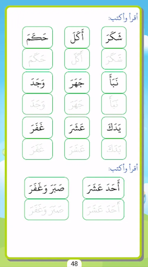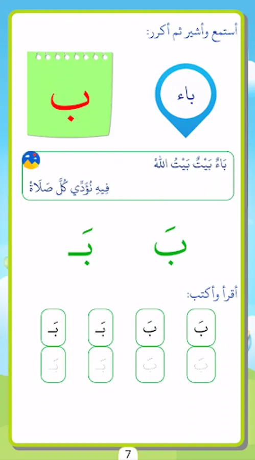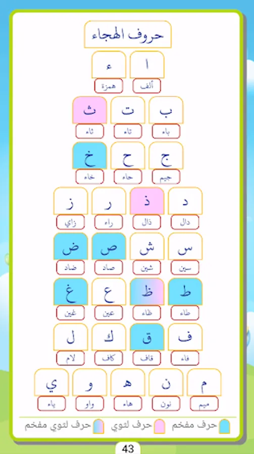 The application contains spellings in an interactive manner that enables the learner to hear the name of the character when it is clicked, with its different forms.