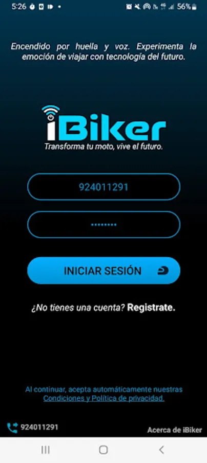 iBiker is a security system for motorcycles, it uses a device that is connected to the motorcycle and an app where you can select the type of ignition of your motorcycle, either by fingerprint, voice command or by mobile application.