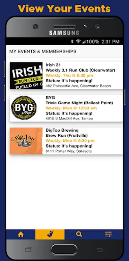 Events range from weekly run clubs or bar trivia nights to bi-monthly social clubs or business networking associations to monthly business seminars or speaking events and even host specific charities, raffles and contests.