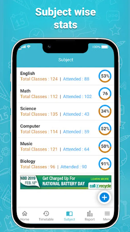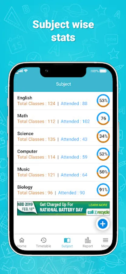 -View your overall attendance record and subject-wise attendance record under the tab “Report” in percentage with more details like no. of sessions attended and no. of sessions conducted etc.