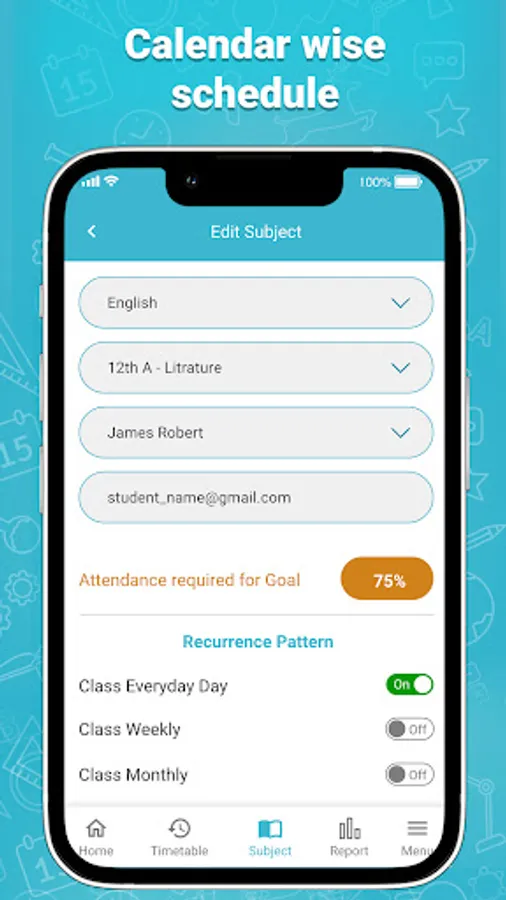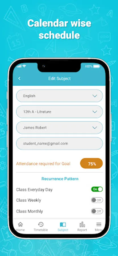 -You can Export the overall or subject-wise attendance sheet to get an overview of your total attendance on a weekly/monthly/yearly basis.