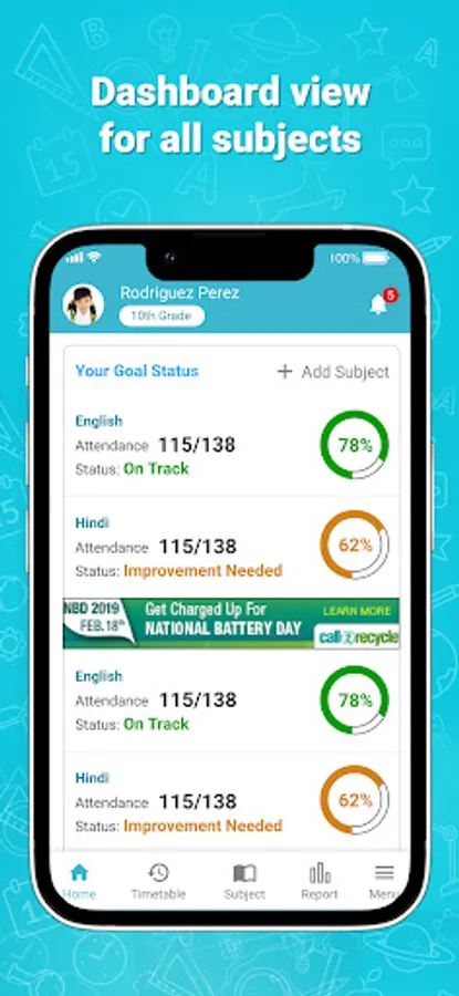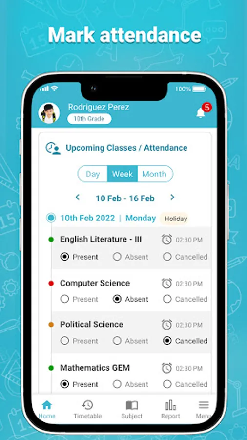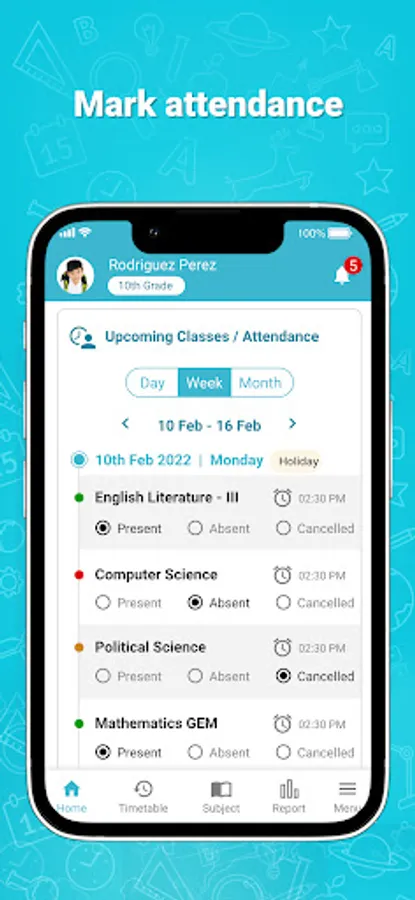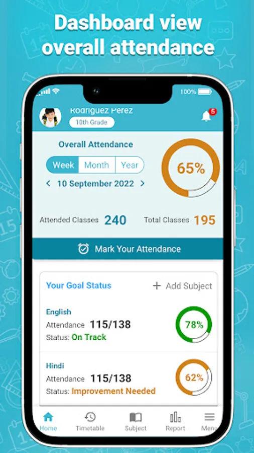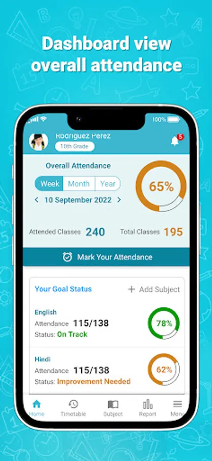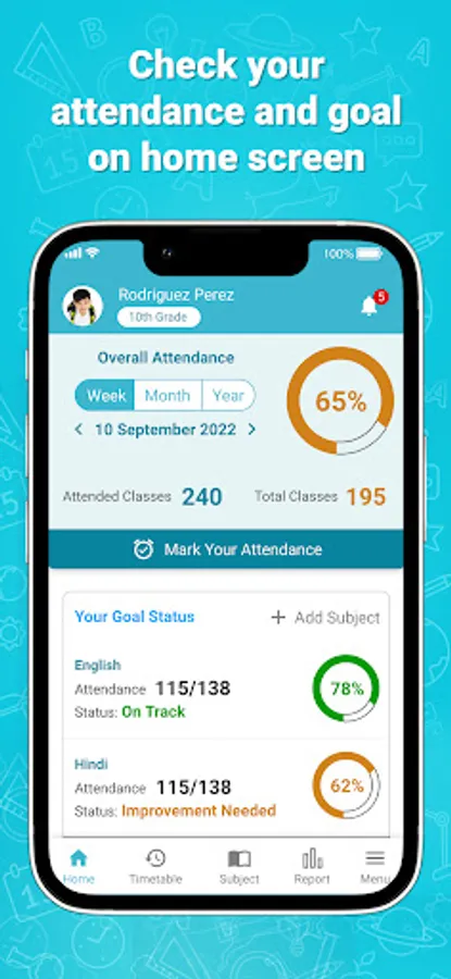 -Easily mark your attendance with the "Home" tab where sessions are displayed subject-wise.