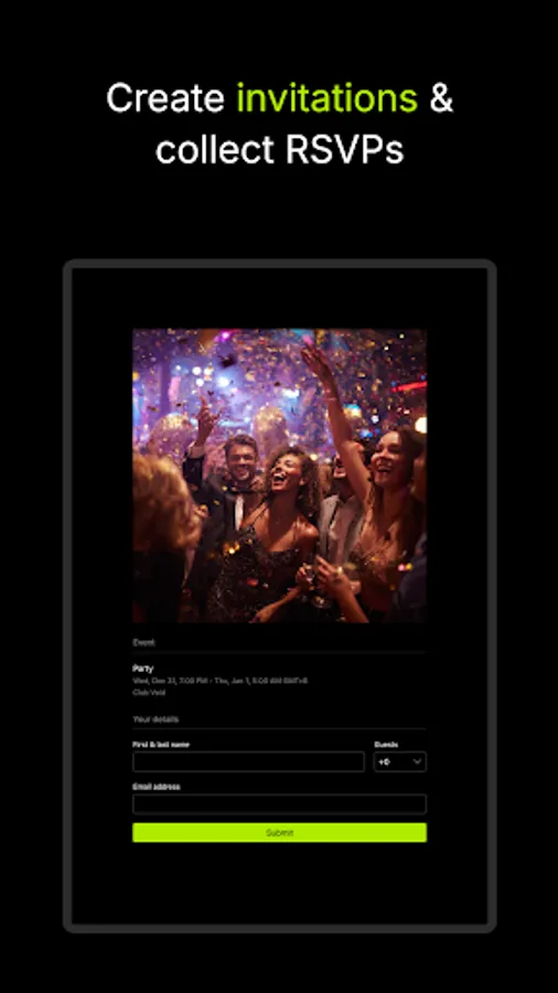 All functions are available for iOS, android & web. So you can set up and manage your event wherever you are.