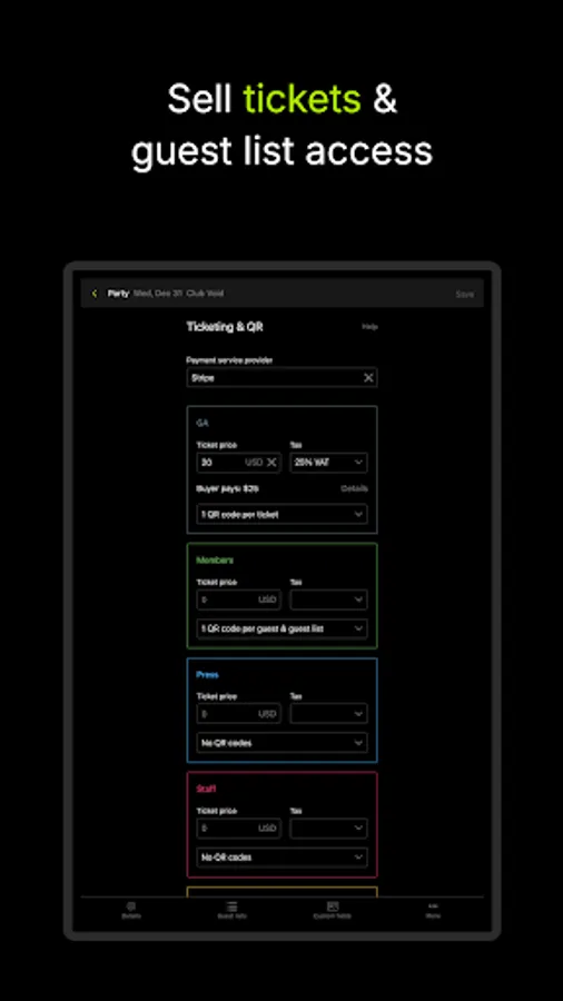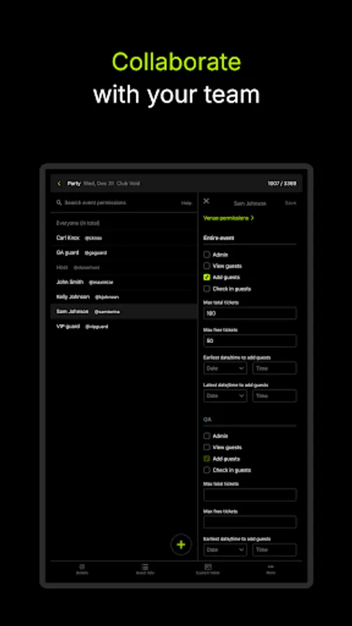 For example, limit promoters to only be able to add and see their own guests and door hosts to just check in guests.