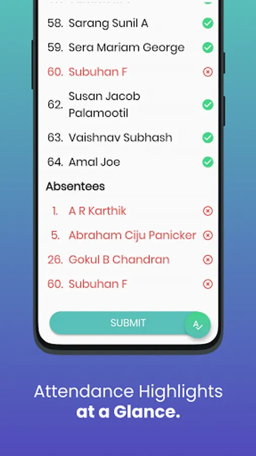 Easily take attendances, either manually or through the one touch Auto Attendance Feature.