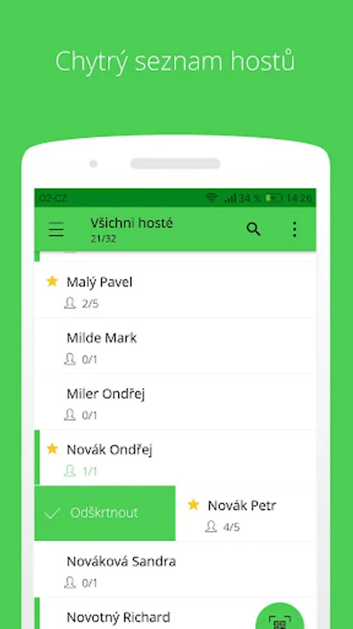 Guests simply check off your scanning a QR tickets . Brought a guest ticket? Unselect it using smart search and manually adding . If the guest did not come alone, one click at his mention accompaniment .