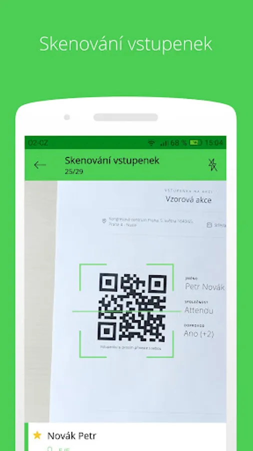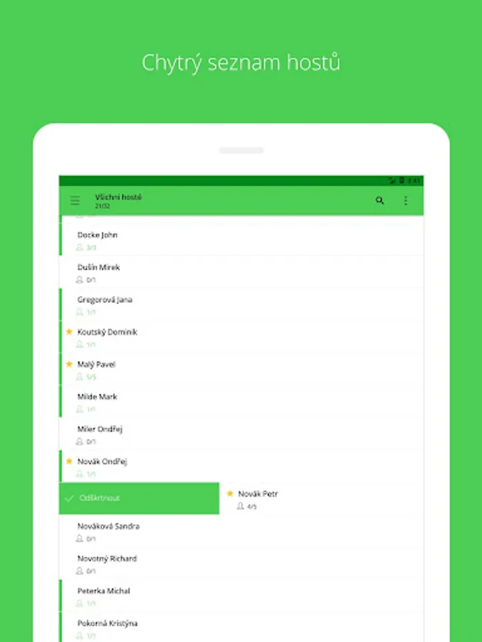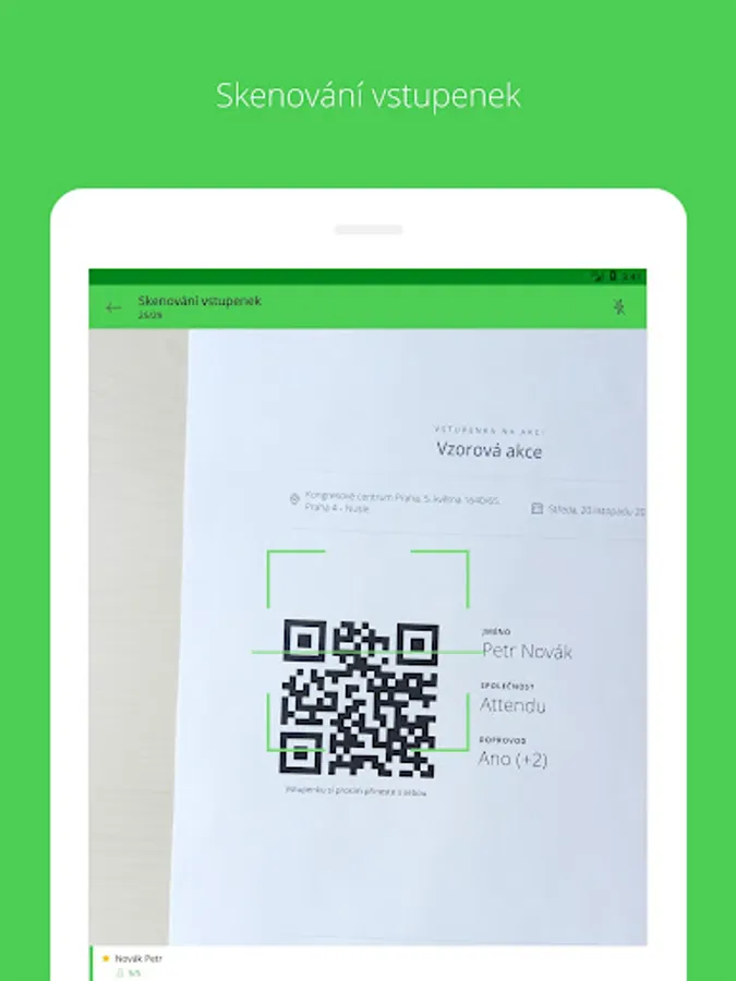 Guests simply check off your scanning a QR tickets . Brought a guest ticket? Unselect it using smart search and manually adding . If the guest did not come alone, one click at his mention accompaniment .
