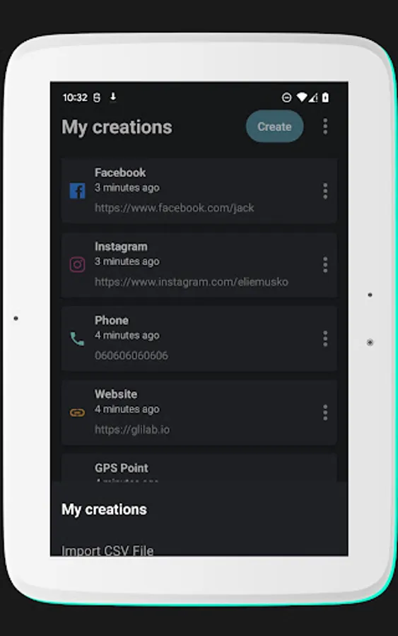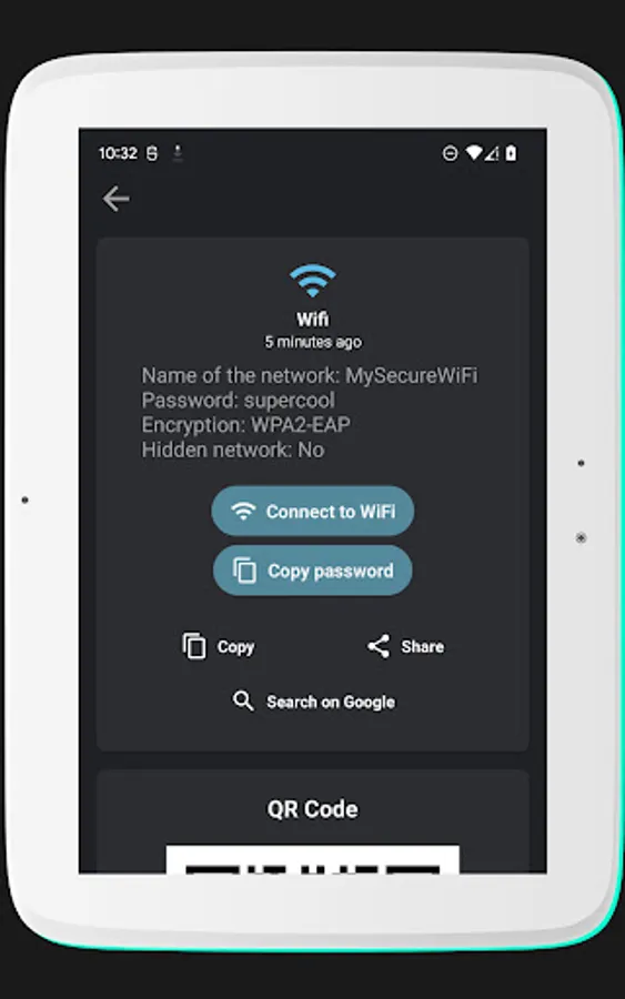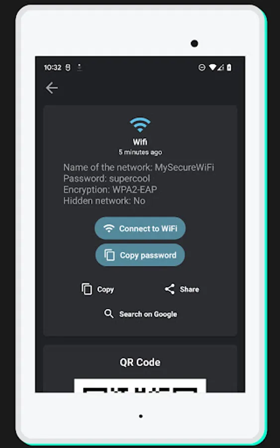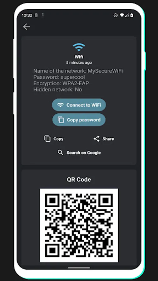 You can save all your QR Codes locally on your phone so you can export them in different formats for backup or sharing with others.
