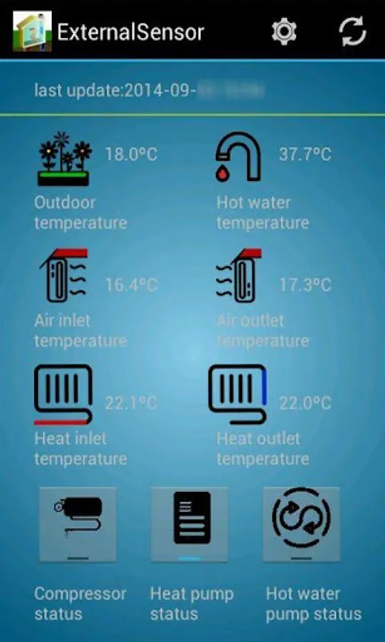 - Reads and displays status of the compressor, the heat and hot water circuit pump.