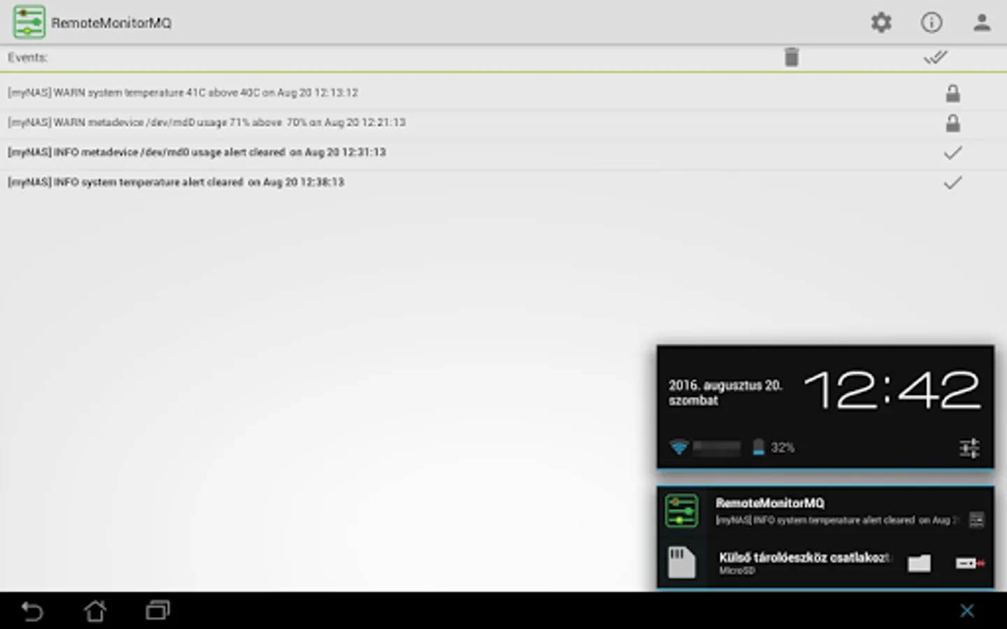 While the Remote Monitor Widget (https://www.google.com/url?q=https://play.google.com/store/apps/details?id=com.atticus.widget.remotemonitor) uses polling to catch status of different devices, RemoteMonitorMQ uses messaging to not miss any event from your monitored devices.