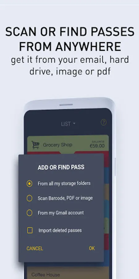 ✔ Access your Files to retrieve and save in PassWallet, the passes you have saved on your device