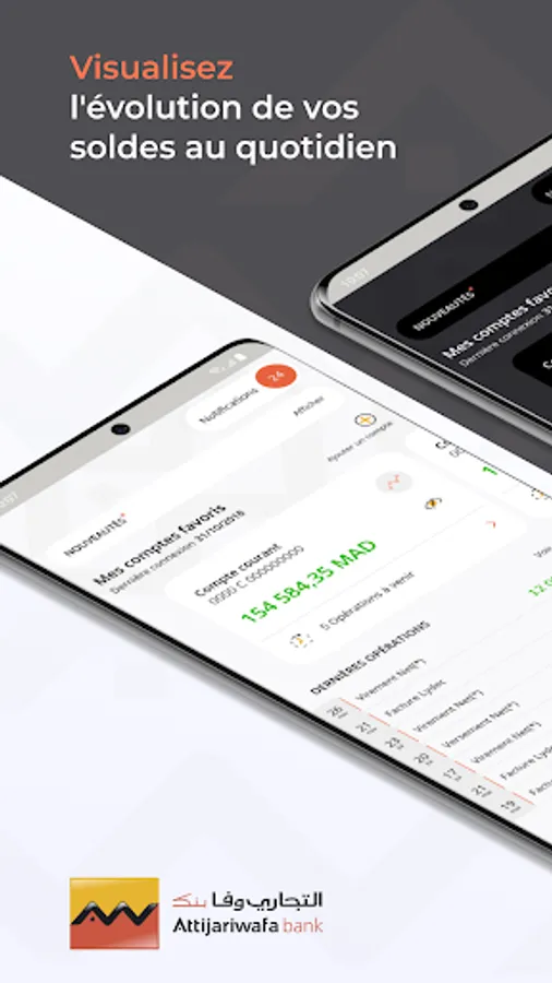 The Attijari Business app can be used in light or dark mode: you can use your preferred display to manage your bank account.