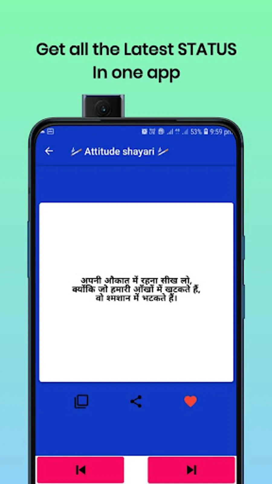 Now get the best and latest attitude status, you can copy and share the status to your friends and and contacts.
