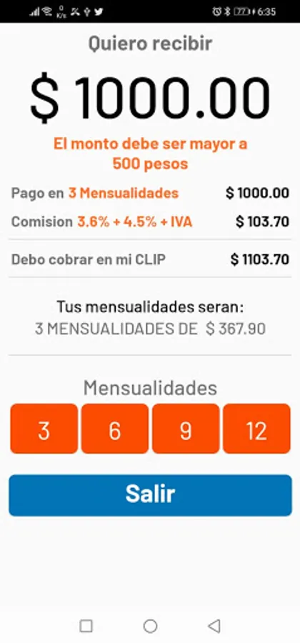 With this tool you will be able to know exactly how much you will have to charge to receive what you need, using a Clip terminal.