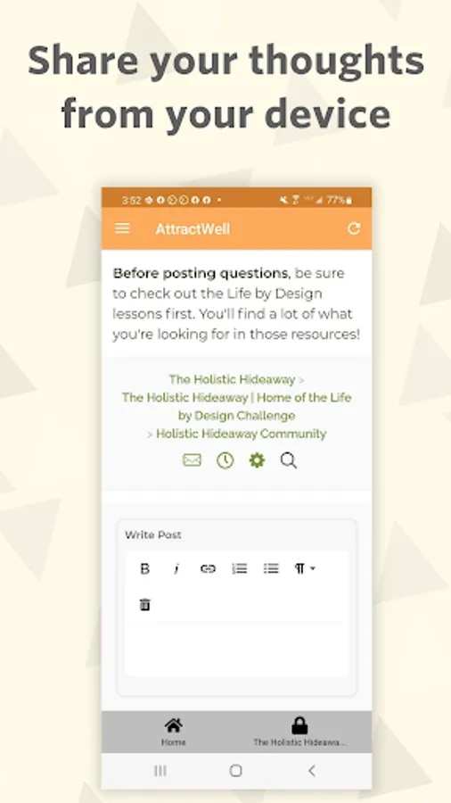 If you're in an AttractWell course or community of someone else's, great! You can keep on interacting and learning from your device, no matter how many courses or communities you belong to.