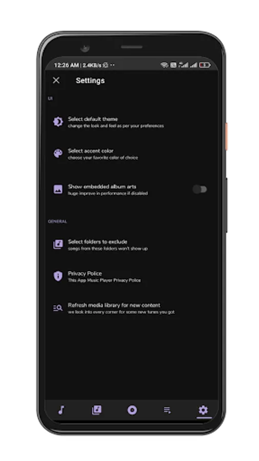 Audio Music Playerapp is a powerful player which helps you listen to all song formats and help you edit music information and optimize them by cutting tool. Audio Music Playerapp supports almost formats of audio files. Following music formats can be playback well: MP3, AAC, MP4, WAV, M4A, FLAC, 3GP, OGG, etc. This music player is also called with other name: mp3 player. Because mp3 format is most popular song format in android.