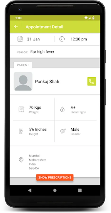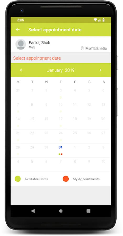 * The appointment list contains the details about your current, previous as well as upcoming appointments.