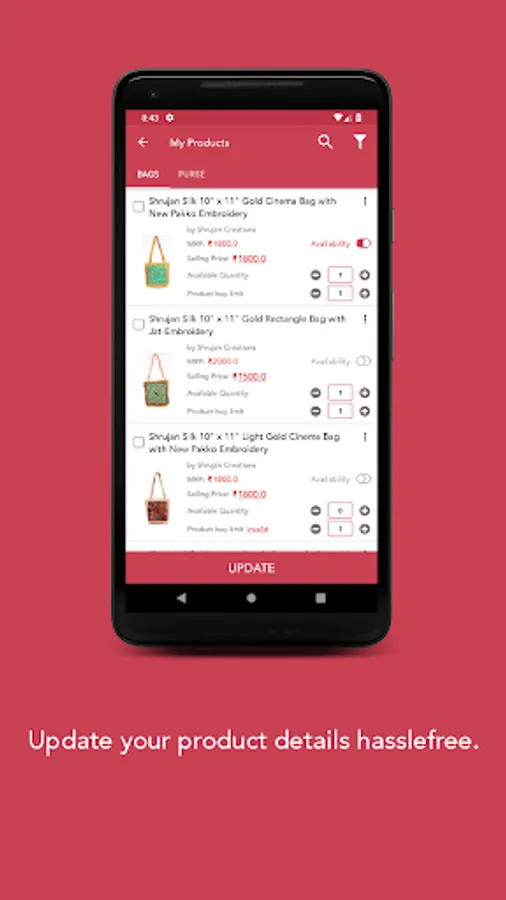 Manage Product Details: You can change the details of any product including its price, availability, and available quantity. Also, you can upload the images of any products and can change the images of the existing products