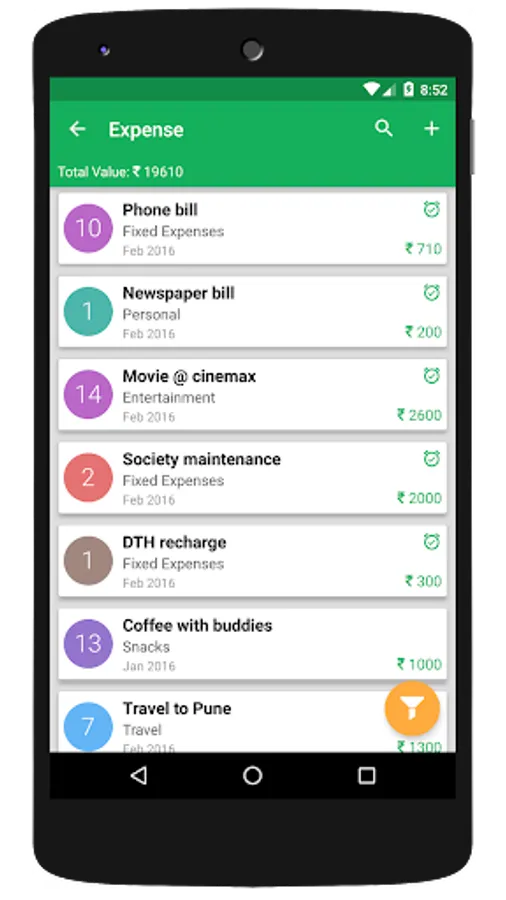 -Set reminders on recurring expenses and get alerts hourly, daily or monthly